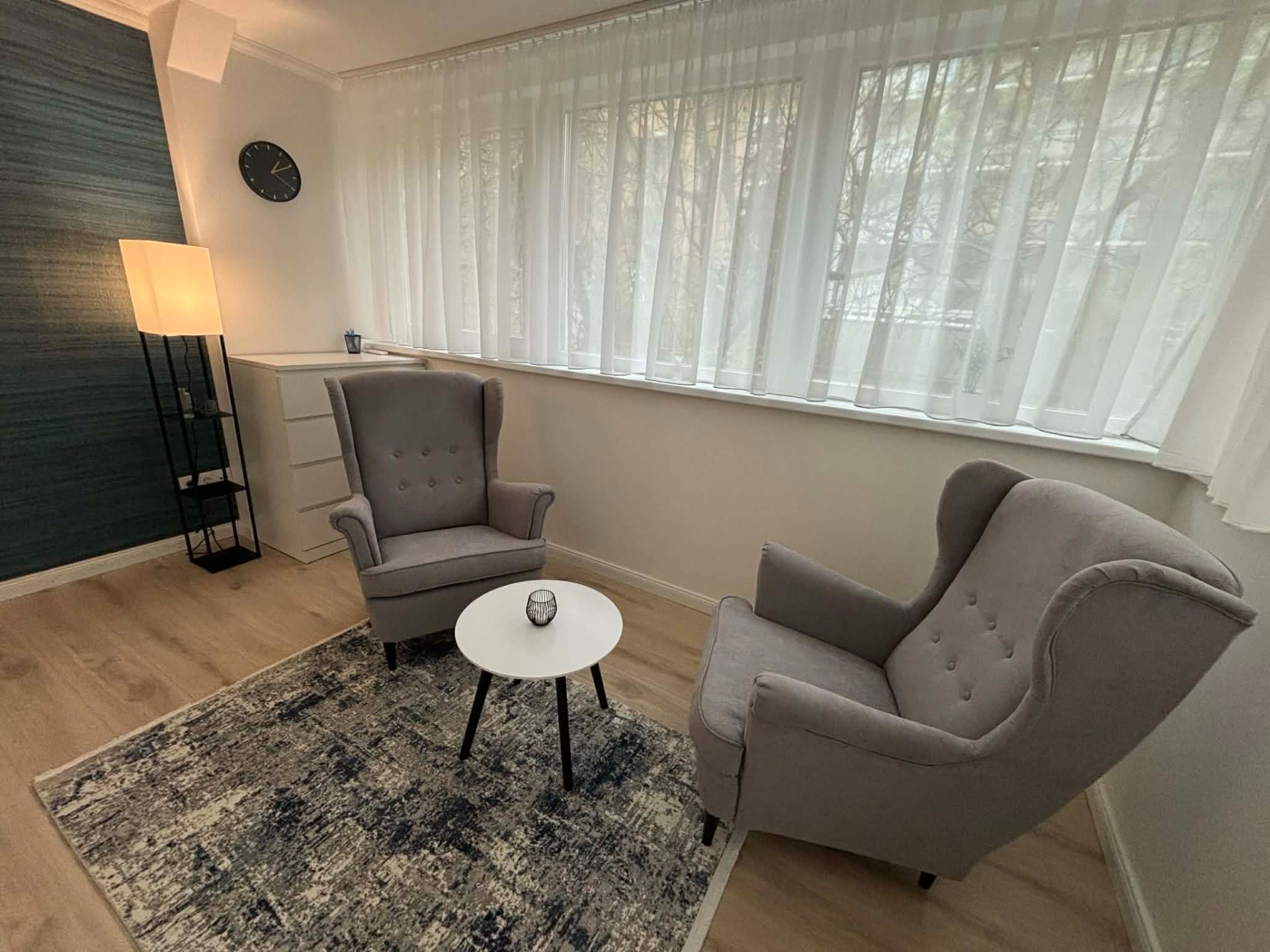 A Bézs szoba világos, megnyugtató hangulatú helyiség, mely 4 férőhelyével mind egyéni, mind páros konzultációkra alkalmas. A helyiség klimatizált, ablaka belső udvarra néz, amely betekintésvédő fóliával van ellátva.