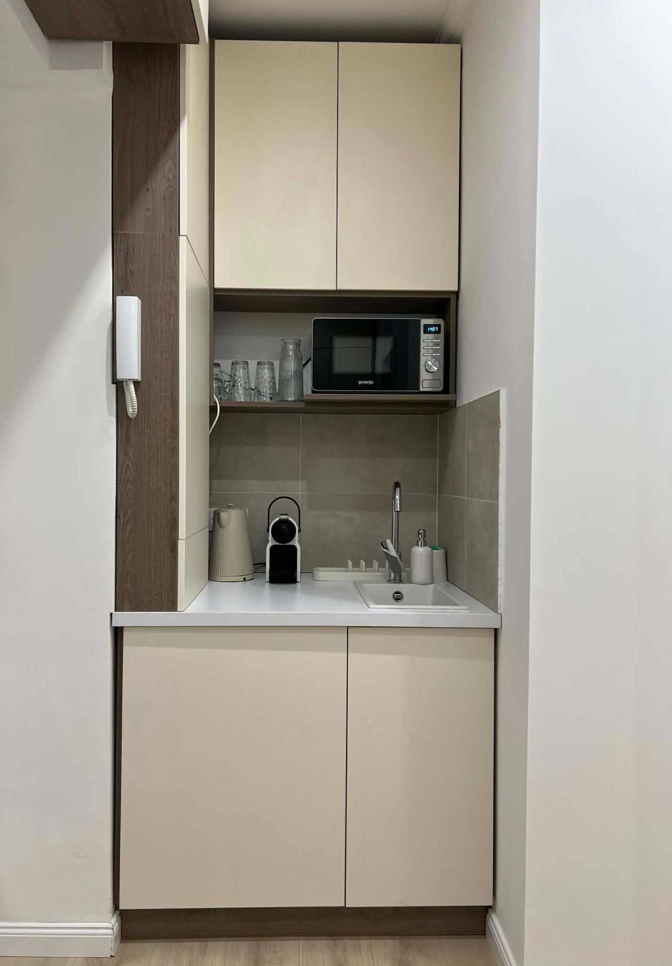 A szakemberek számára rendelkezésre álló teakonyhánk a legfontosabb kényelmi eszközökkel jól felszerelt. Kialakítása és megjelenése a rendelő többi terével harmonizáló.